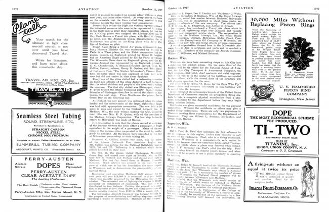 In its first month of passenger carrying service out of Chicago, the National Air Transport, Inc., handled 107 passengers, according to Col. Paul Henderson, vice-president and general manager, in a statement issued Oct. 1. Seventeen of this number flew between Chicago and New York and the other 90 travelled on the Chicago-Dallas route.