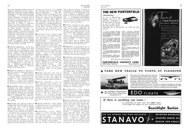 ALABAMA—GADSDEN’S new municipal airport at Centre was dedicated May 25 and 26 with a well attended air show. . . . The Aviation Supply Division of the MONTGOMERY School of Aeronautics, which has been doing an active business in parts and accessories, reports the sale of a new Fairchild 24 to Jack Forshner of Greenwood, Miss. Salesman, L. L. Brabham. . . .