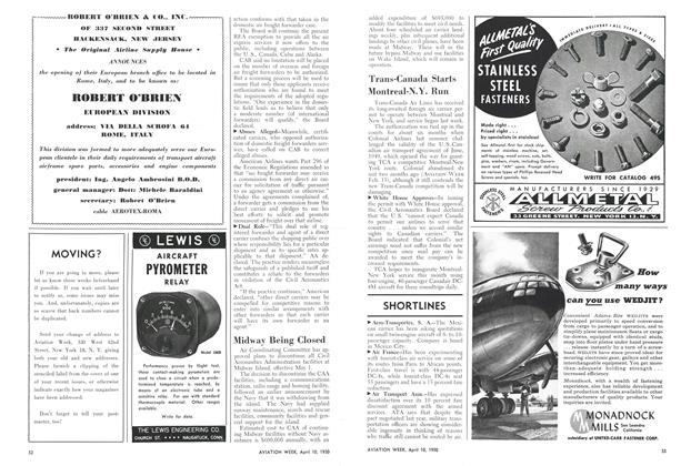 Curtiss-Wright Propeller div., Curtiss-Wright Corp., Caldwell, N. J., received an Air Force contract totaling $11,016,559 for installation and spare propeller assemblies with spare parts for Convair B-36 bombers. Contract date is Jan. 5, 1950.