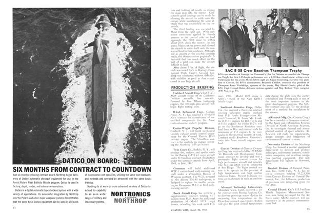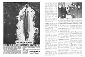 Seattle, Wash.—Better takeoff performance, lower fuel consumption and higher payload-carrying capability are the most notable features of the Boeing 720B which enters American Airlines service this month. Thrust increase of 40% supplied by the four turbofan engines enable the 720B to cruise at 630 mph. at 25,000 ft., take off from one-third less runway than the 720 at comparable weight, use 20% less fuel at comparable speeds and operate at a gross weight 20,000 lb. in excess of its predecessor 720.