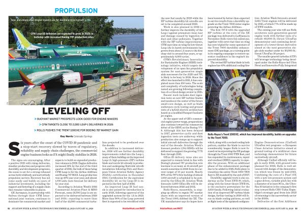 > BUOYANT MARKET PROSPECTS LOOK GOOD FOR ENGINE-MAKERS > CFM TARGETS CLOSE TO 2,000 LEAP-1 DELIVERIES IN 2026 > ROLLS PUSHES THE TRENT 1000XE FOR BOEING 787 MARKET GAIN