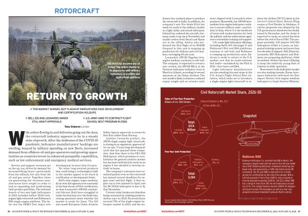> THE MARKET SURGES, BUT FLAGSHIP INNOVATIONS FACE DEVELOPMENT AND CERTIFICATION HOLDUPS > BELL 525 AND LEONARDO AW609 STILL AWAIT APPROVALS > U.S. ARMY AIMS TO CONTRACT FLIGHT SCHOOL NEXT PROGRAM IN 2026